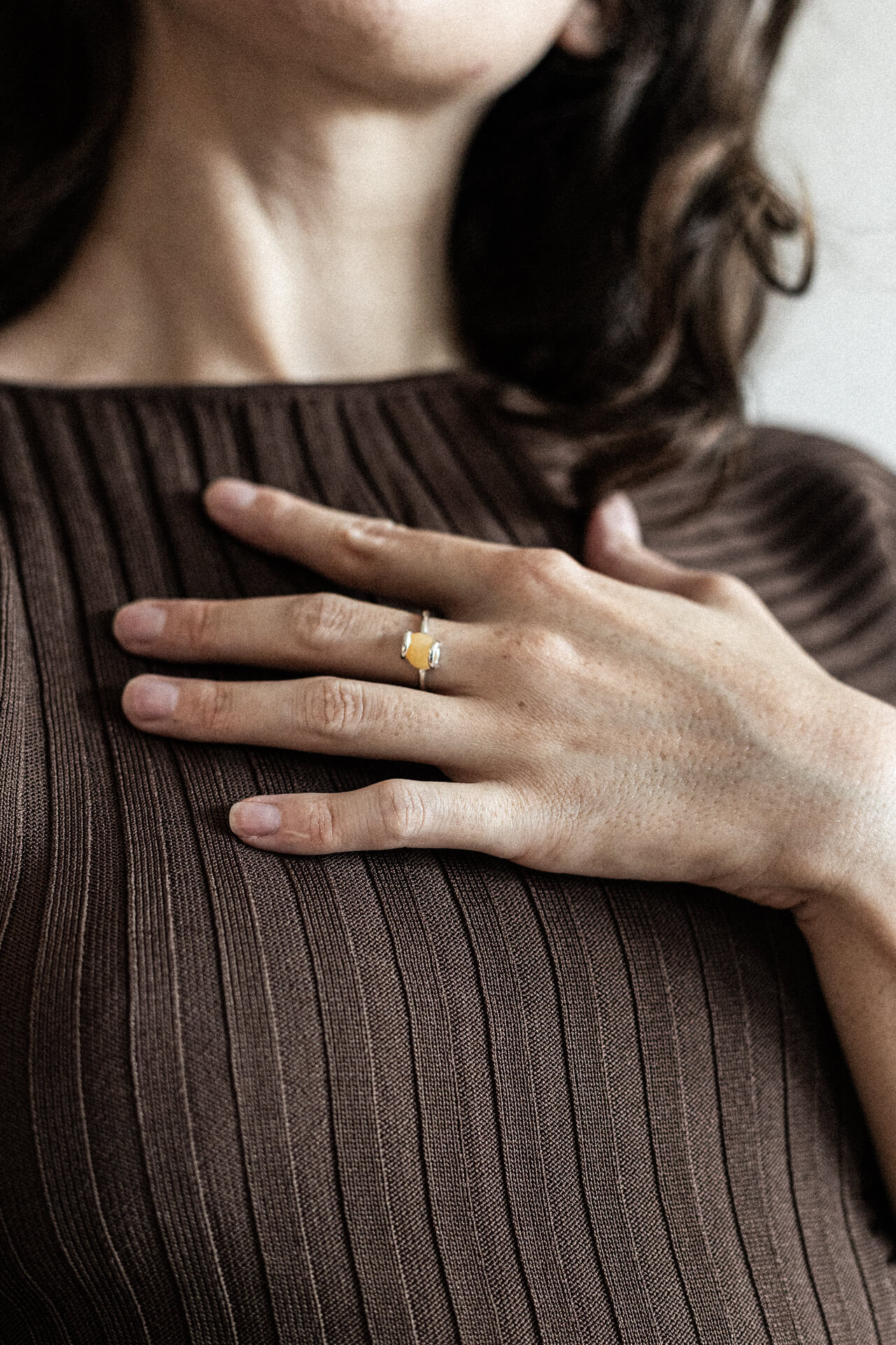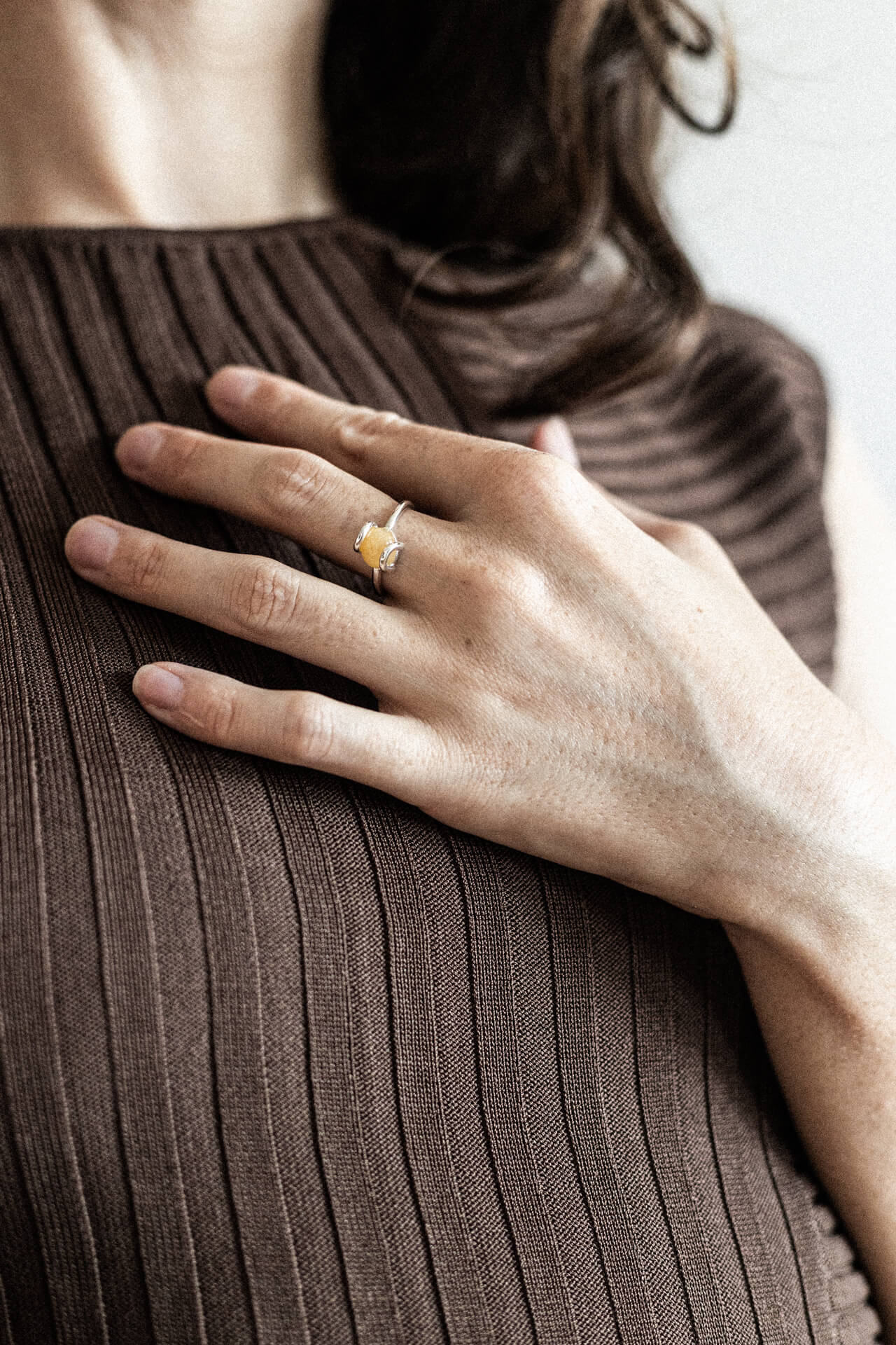 OBJĘCIA to seria ręcznie wykonanych wyjątkowych pierścionków w autorskiej oprawie. W OBJĘCIACH PIASKOWYCH obejmujemy oszlifowane na kształt kamienistego kavowego logo awenturyny, które wyglądają jak ziarenko piasku w dużym powiększeniu.