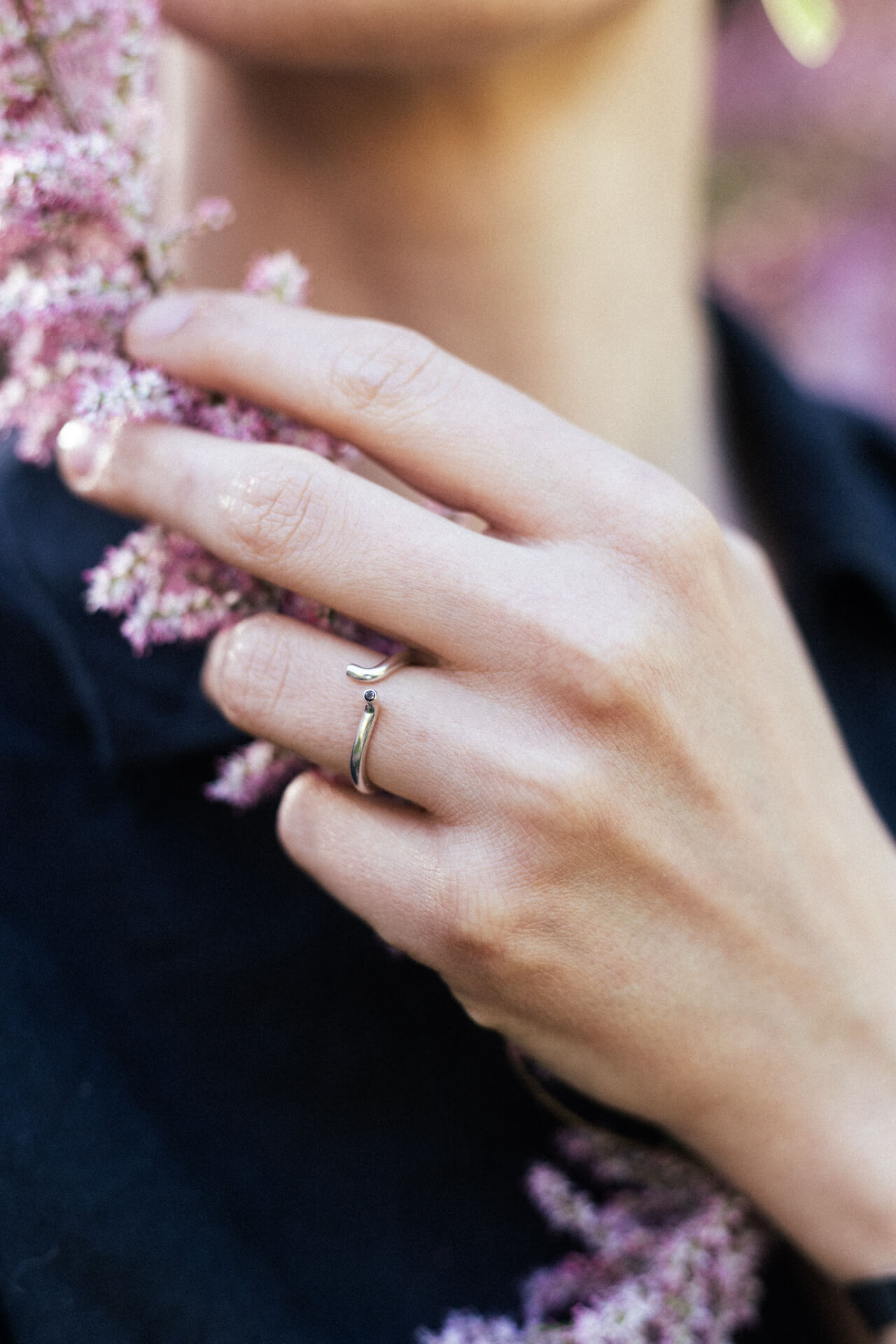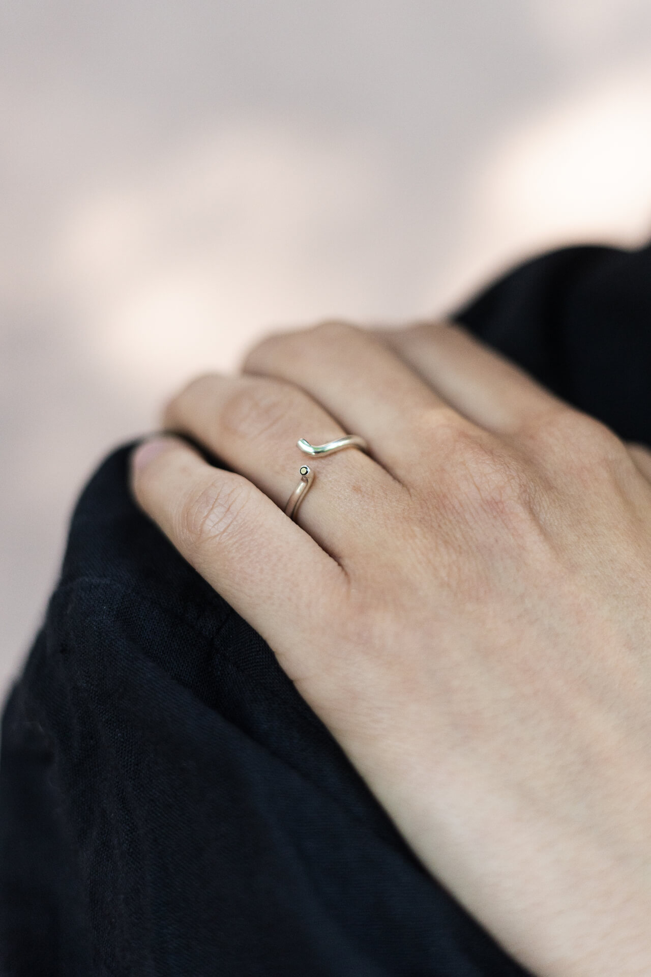 Pierścionek ZAWIJKA OKRĄGŁA to subtelna odsłona kavowych zawijkowych poczynań. Pierścionek składa się z pełnej w środku obrączki srebrnej o średnicy 2 mm wykonanej ze srebra 925 (pełny w środku drut srebrny) zawiniętej z jednej strony do góry, z drugiej do boku. Górny zawijas kończy się klasycznie oprawionym kamieniem. Pierścionek jest komfortowy w noszeniu.